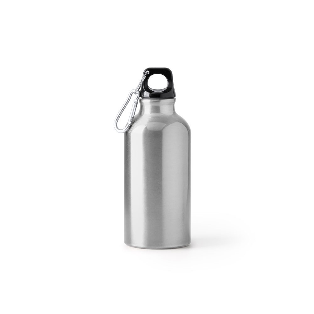 Бутылка из переработанного алюминия с карабином. Емкость 400 мл. Карабин для более удобной переноски бутылки, не рекомендуется для лазания.