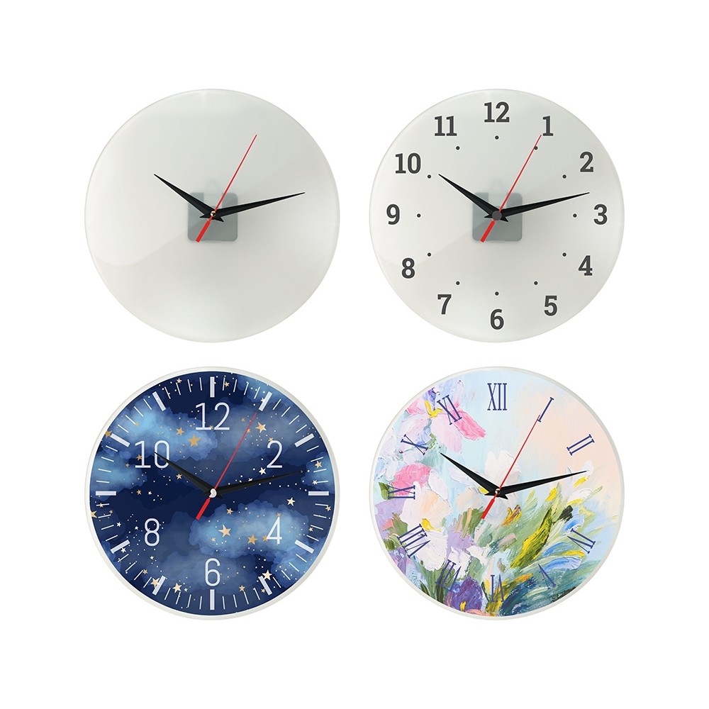 Часы предназначены для нанесения циферблата на стекло по индивидуальному дизайну с помощью технологии цифрового термотрансфера: на оборотную сторону циферблата заводским способом нанесена специальная пленка. Изображение печатают на обычной глянцевой бумаге, а затем закрепляют на циферблате термопрессом — пленка плавится, и бумага с печатью плотно припаивается к стеклу.