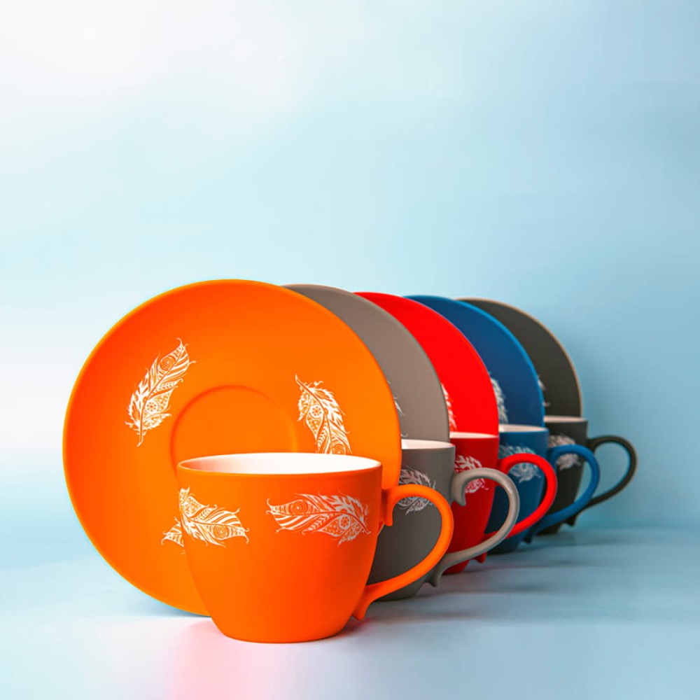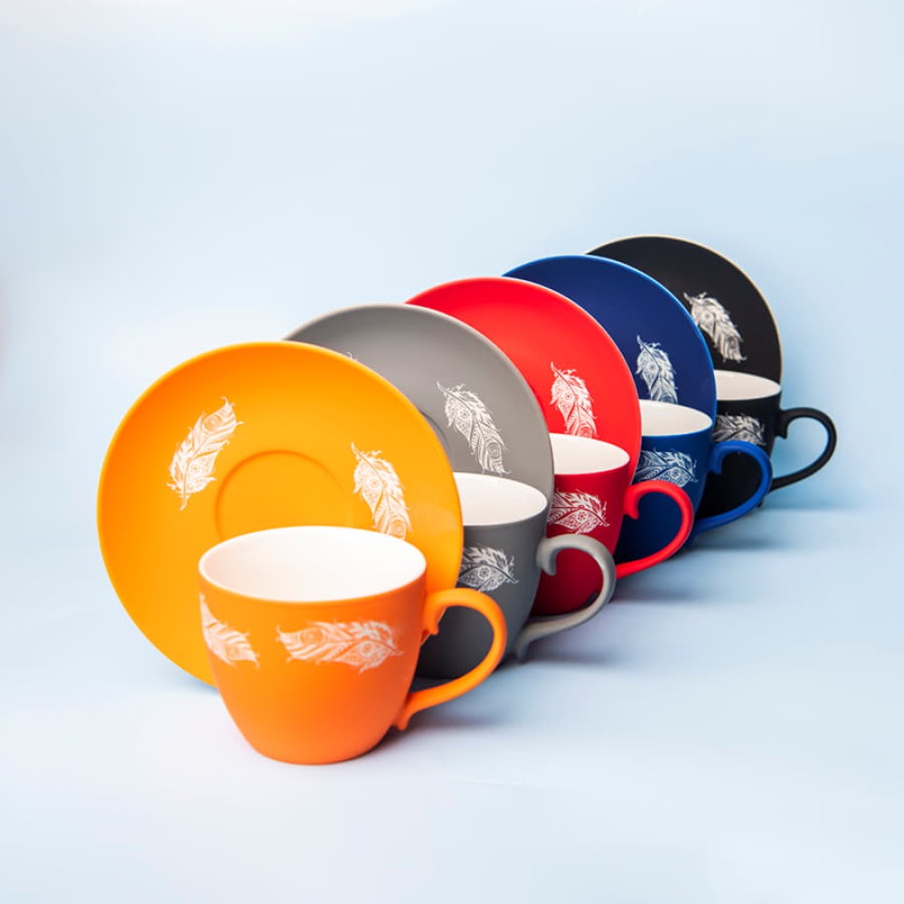 Чайная пара из фарфора с прорезиненным покрытием soft-touch