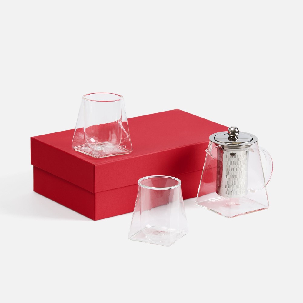 | Материалчайник, стаканы - боросиликатное стекло; крышка и сито - нержавеющая сталь; коробка - переплетный картон, бумага Classy Covers |