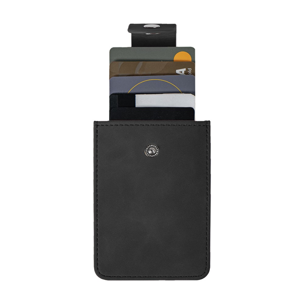 Внутри выдвижной механизм с отделениями для 4 карт.