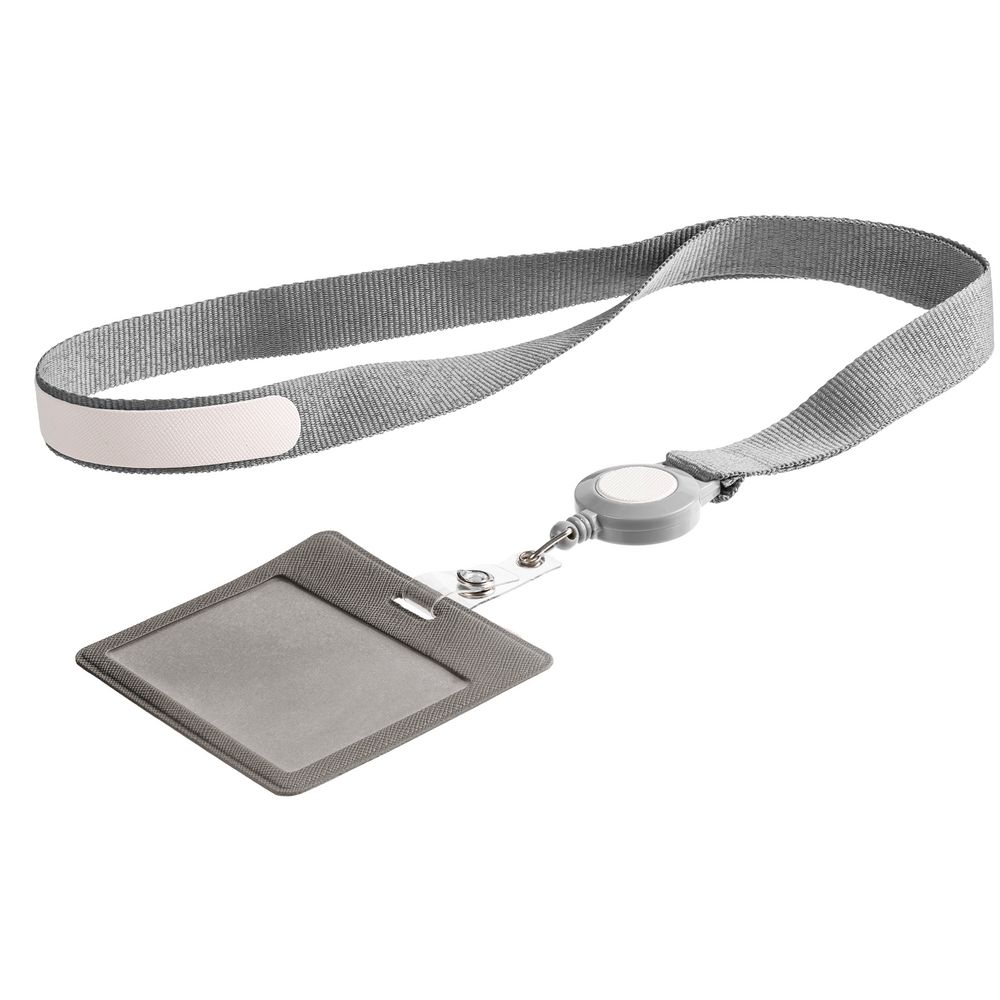 Чехол для карточки с лентой и ретрактором Devon, серый с белым