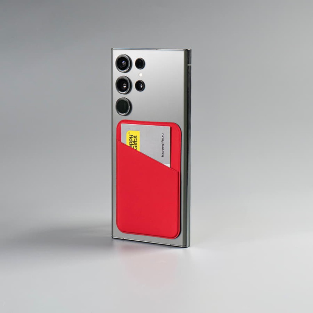Чехол для карты Simply, самоклеящийся 65 х 97 мм, красный, PU, с эффектом soft touch, для карты 86 мм х 54 мм, скошенный угол. Крепится с помощью двухстороннего скотча.