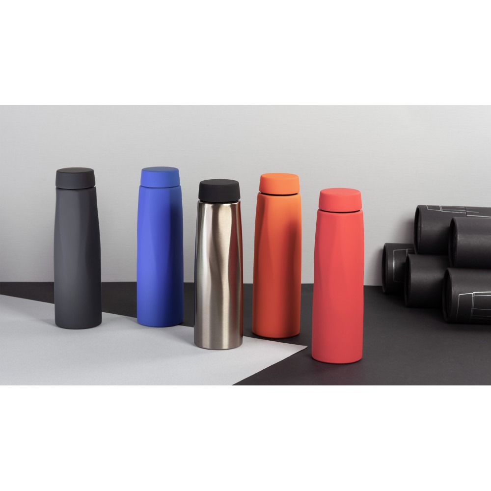 Рельефный корпус термоса напоминает «языки пламени», сразу притягивает к себе внимание. Бархатистое покрытие soft touch создаёт мягкий тактильный эффект и, кроме того, позволяет увеличить поле для нанесения (применительно к газовому CO лазеру). Полностью герметичный. Компактный объём в 500 мл удобно брать с собой в путешествия, поездки или на прогулку. Горячий, согревающий напиток или прохладный освежающий коктейль – выбор за вами!