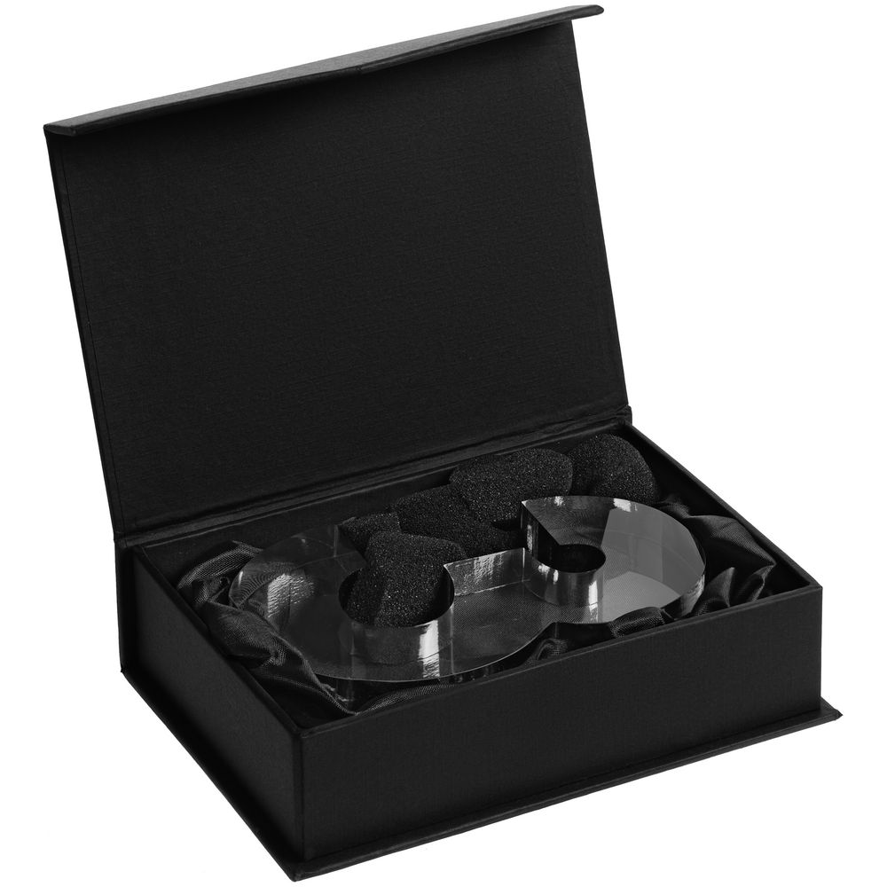 Стела изготовлена из стекла К9, в основе которого лежит оптическое боросиликатное стекло. Эту марку стекла отличает низкий процент посторонних включений, высокий показатель преломления и высокая прозрачность — идеальные качества для изготовления наград премиального уровня.