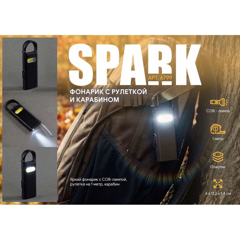 Яркий фонарик с COB-лампой (4 батарейки LR41 в комплекте), рулетка на 1 метр, карабин.