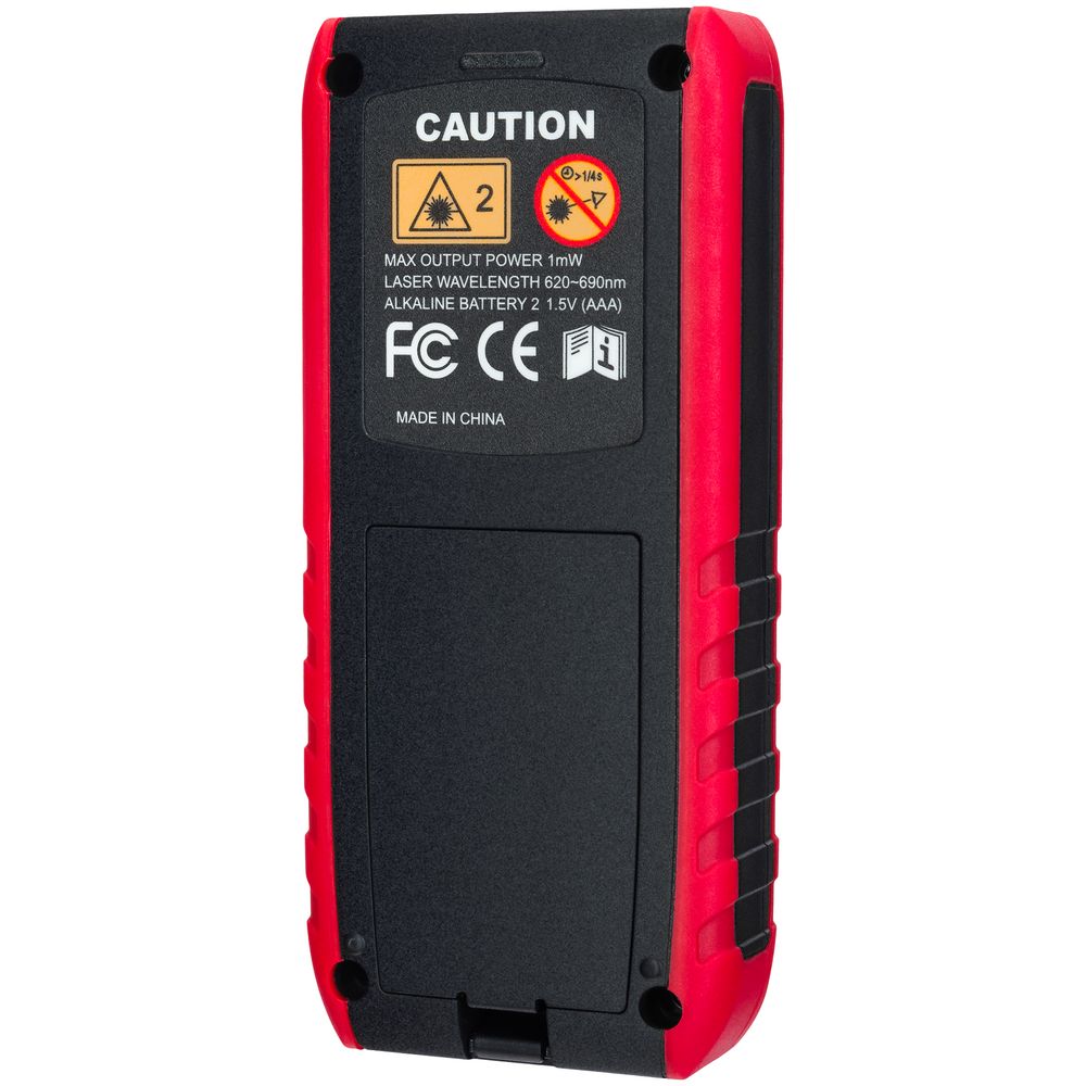 Прибор легко удерживается одной рукой, эргономично расположенные кнопки облегчают управление. Питание устройства осуществляется от 2 батареек ААА, один комплект обеспечивает более 5000 измерений. Функция автоотключения помогает экономить энергию, а индикатор низкого заряда батареи подскажет, когда необходимо заменить источники питания.Лазерная рулетка с ручным (однократный замер) и автоматическим (непрерывное сканирование) режимами работы.- Функция измерения длины: диапазон измерения длины — 0,05-100 м, единицы измерения длины — метры, футы, дюймы, точность измерений — ±2 мм