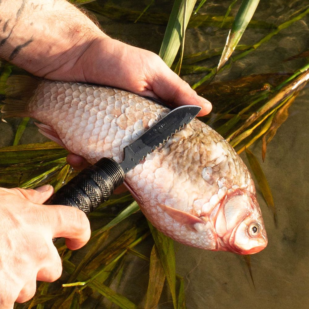- Нож с прямым и зубчатым лезвием