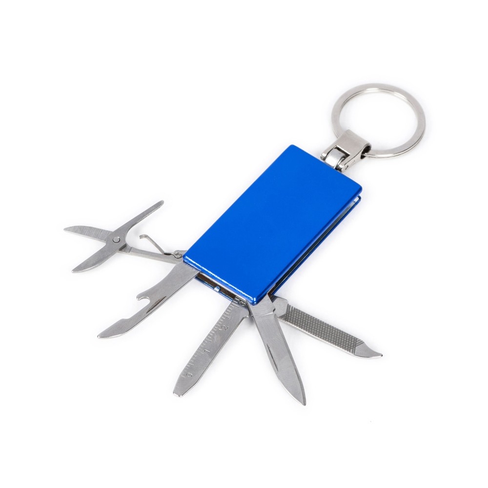 Брелок-мультитул на кольце в металлическом корпусе с заметным полем под нанесение.