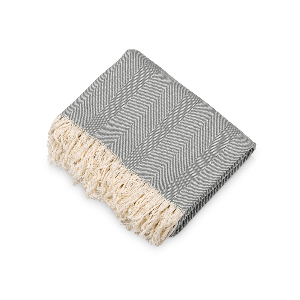 Плотный плед из натурального хлопка с бахромой по бокам. Можно использовать как одеяло или как покрывало для украшения интерьера.