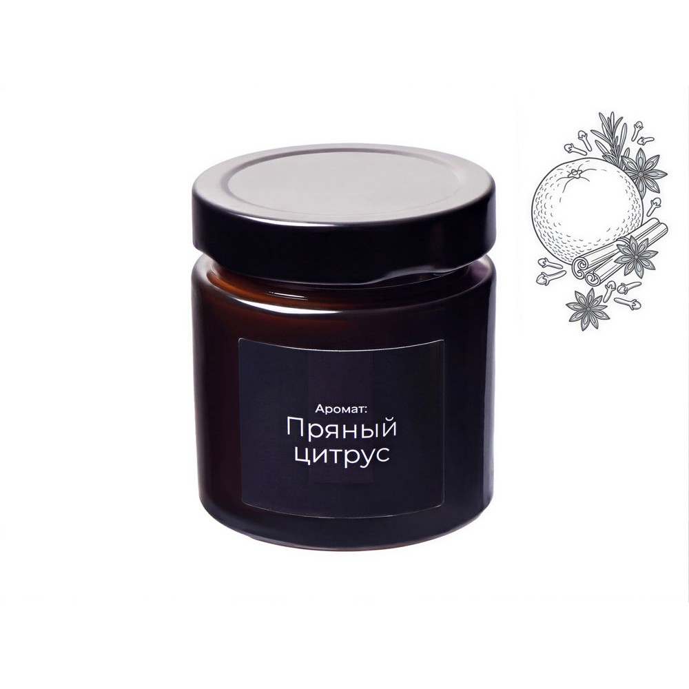 • Свеча в стеклянной коричневой банке 200мл, аромат Пряный цирус, фитиль деревянный