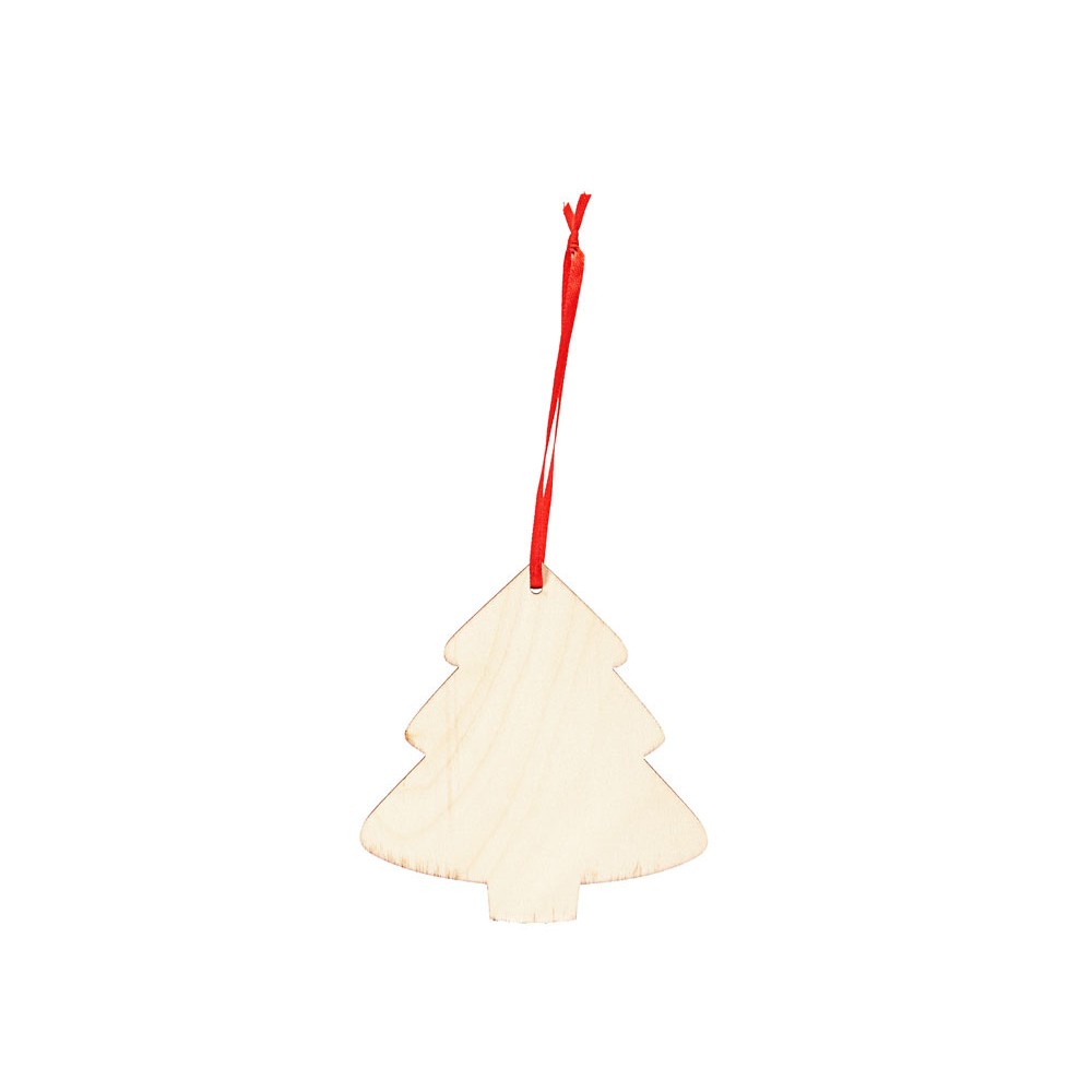 Деревянное новогоднее украшение на красной ленте для подвешивания.