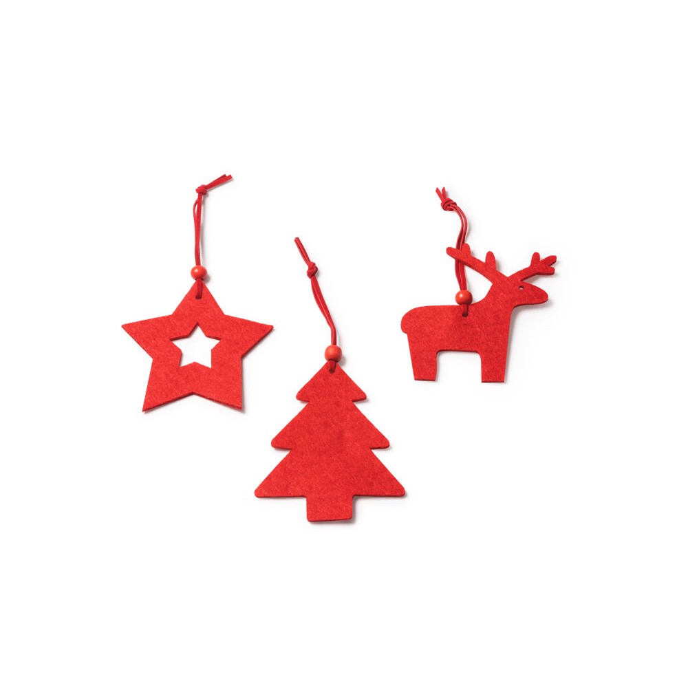 • Набор рождественских украшений из фетра CAROL (звезда, елка, олень), красный