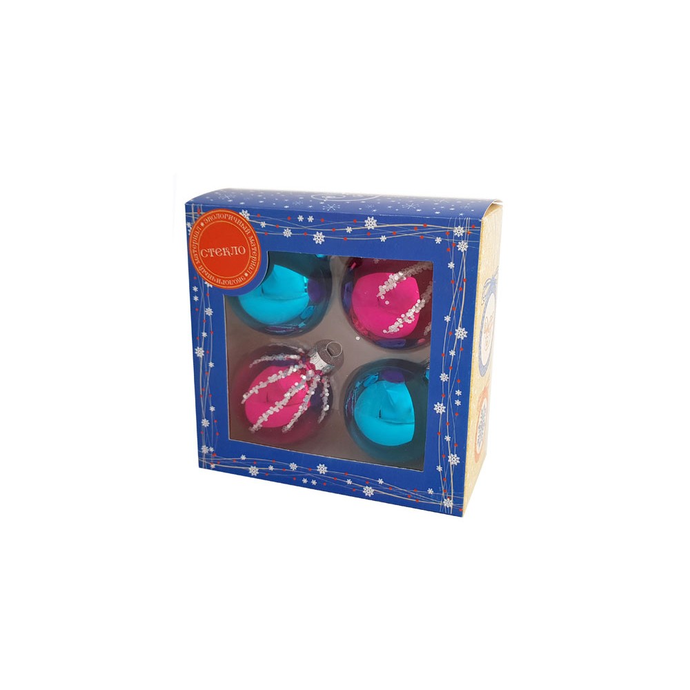 • Новогоднее подвесное украшение Бирюзово-розовый шар из стекла, набор из 4 штук / 6см