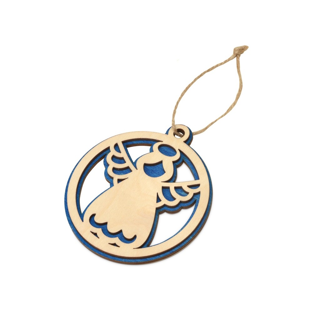 Елочная игрушка в виде главного символа праздника. новогоднего ангела – атмосферный и праздничный сувенир. Подвеска изготовлена из березовой фанеры и украшена тонировкой синего цвета, которая подчеркивает объемность игрушки и оттеняет текстуру неокрашенной части подвески. На одеждах ангела можно разместить ваши благопожелания или логотип.