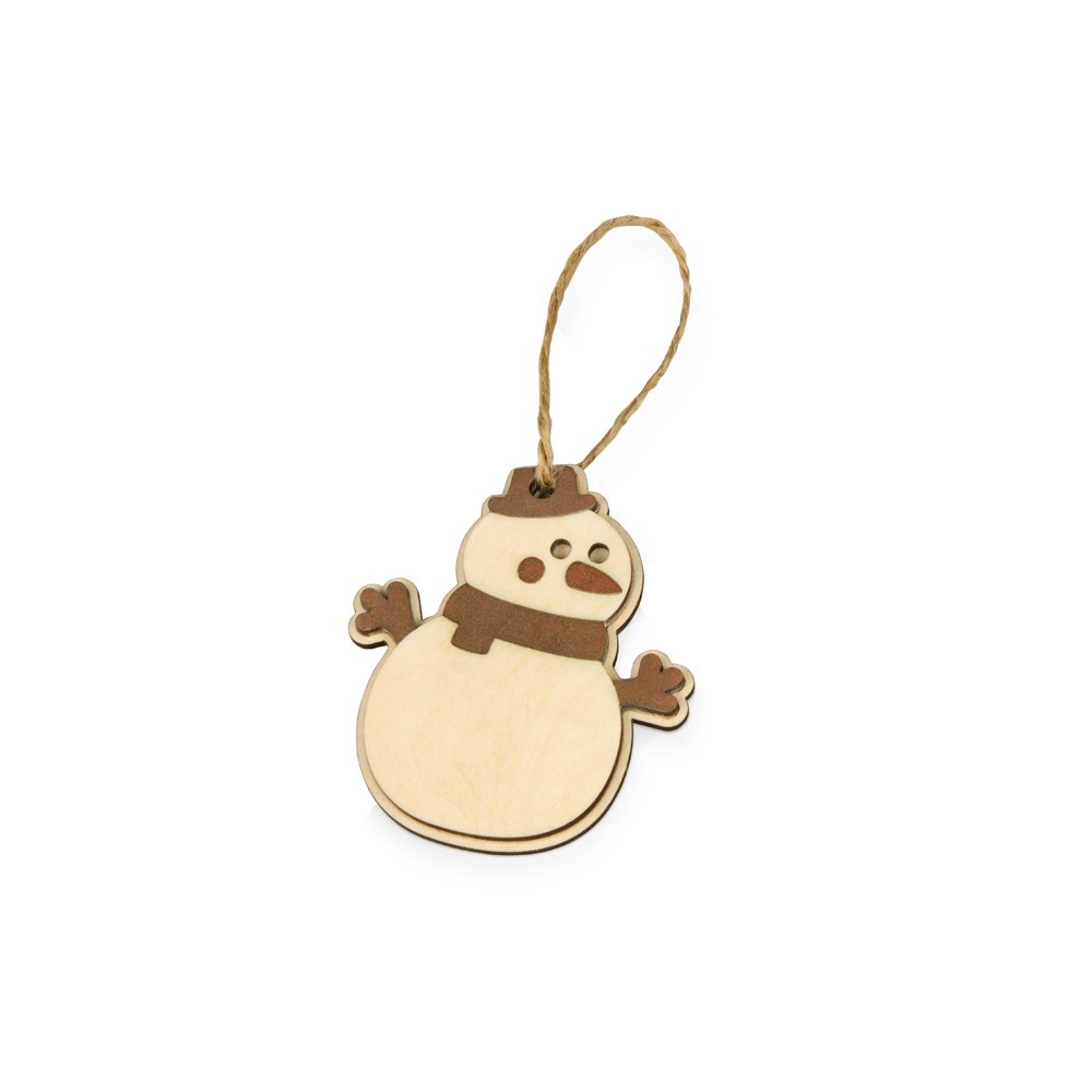Оригинальное елочное украшение в виде снеговика. Подвеска выполнена из березовой фанеры и тонирована в коричневый цвет. Это елочное украшение – отличный вариант для экоелки. Не хотите использовать елочные игрушки из пластика или стекла? Деревянные сувениры из нашего каталога станут отличным украшением, которые создадут атмосферу уюта в вашем доме.