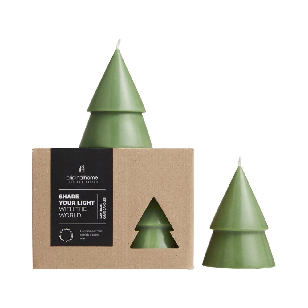 Свеча без запаха в виде елки среднего размера от Originalhome на 100% натуральная и изготовлена вручную из сертифицированного пальмового воска. Это идеальный рождественский подарок для всех, с кем хочется поделиться светом и теплом. Свеча горит примерно 15-17 часов. Palm kernel wax.