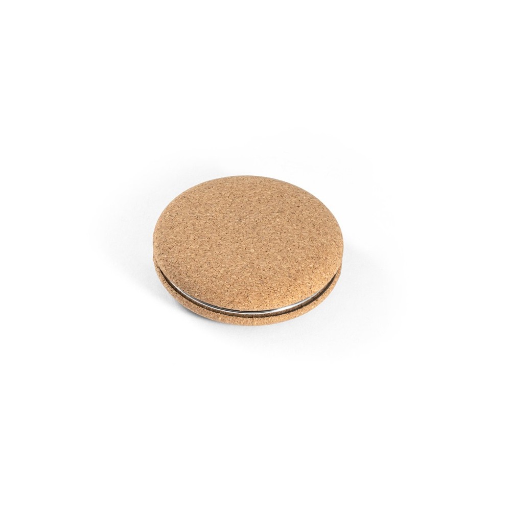 Двойное зеркало из пробки на магните. Поставляется в упаковке из натуральной бумаги. ø73 x 20 мм