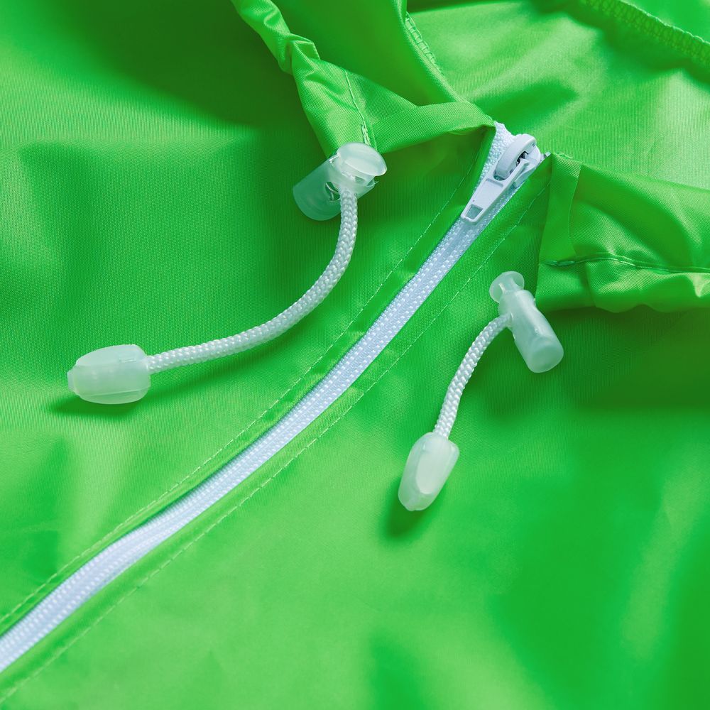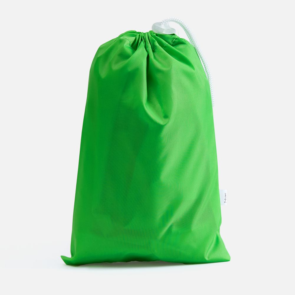 Детский дождевик на молнии из таффеты с влагозащитным покрытием. Складывается в мешочек — удобно брать с собой.