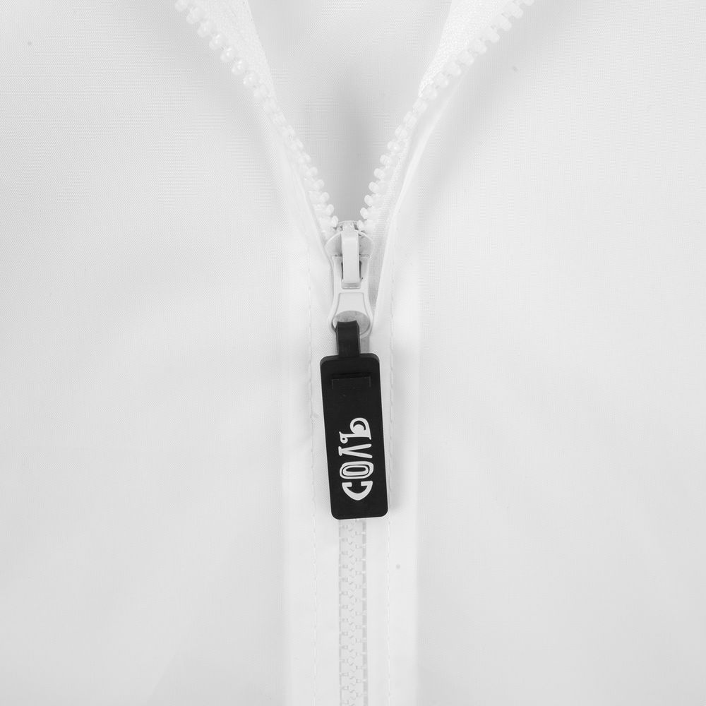 Плащ-дождевик из ткани таффета на молнии с капюшоном. Складывается в мешочек — удобно брать с собой.
