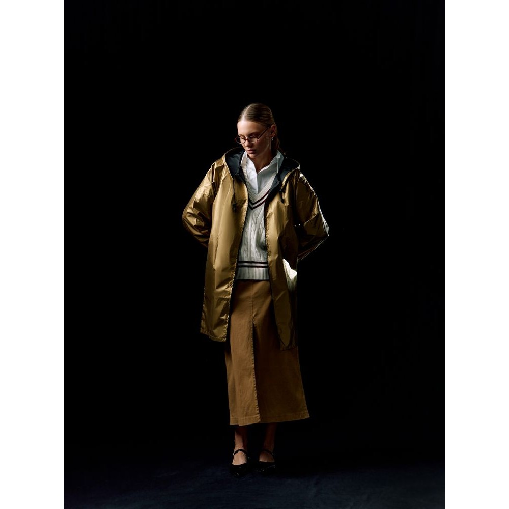 Плащ-дождевик из ткани таффета на молнии с капюшоном. Складывается в мешочек — удобно брать с собой.