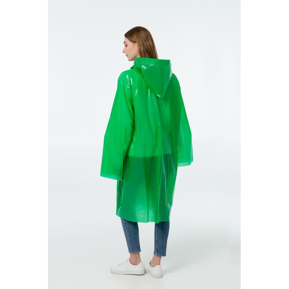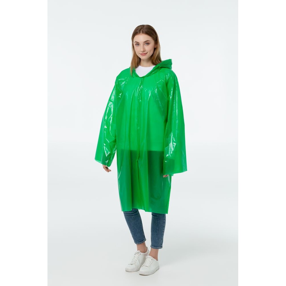 Дождевик-плащ с капюшоном и длинными рукавами из полиэтилена высокого давления (ПВД).