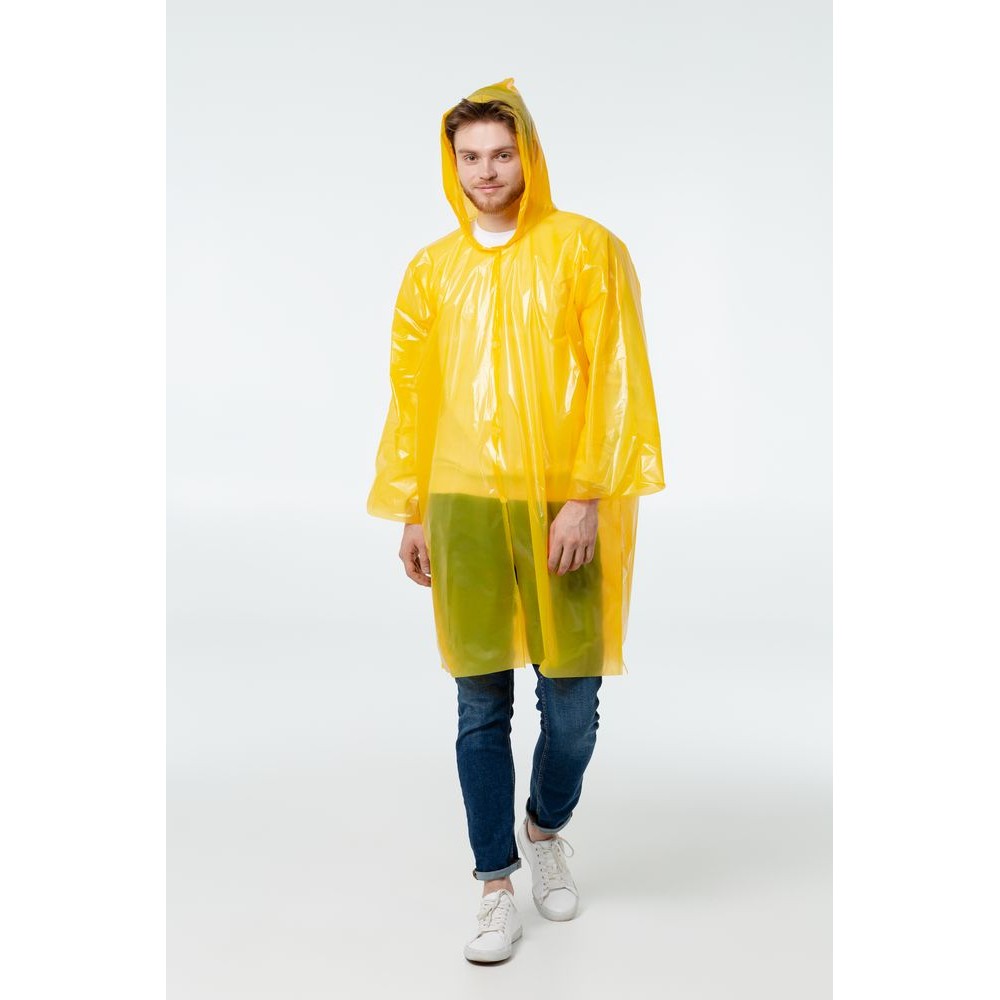 Дождевик-плащ с капюшоном и длинными рукавами из полиэтилена высокого давления (ПВД).