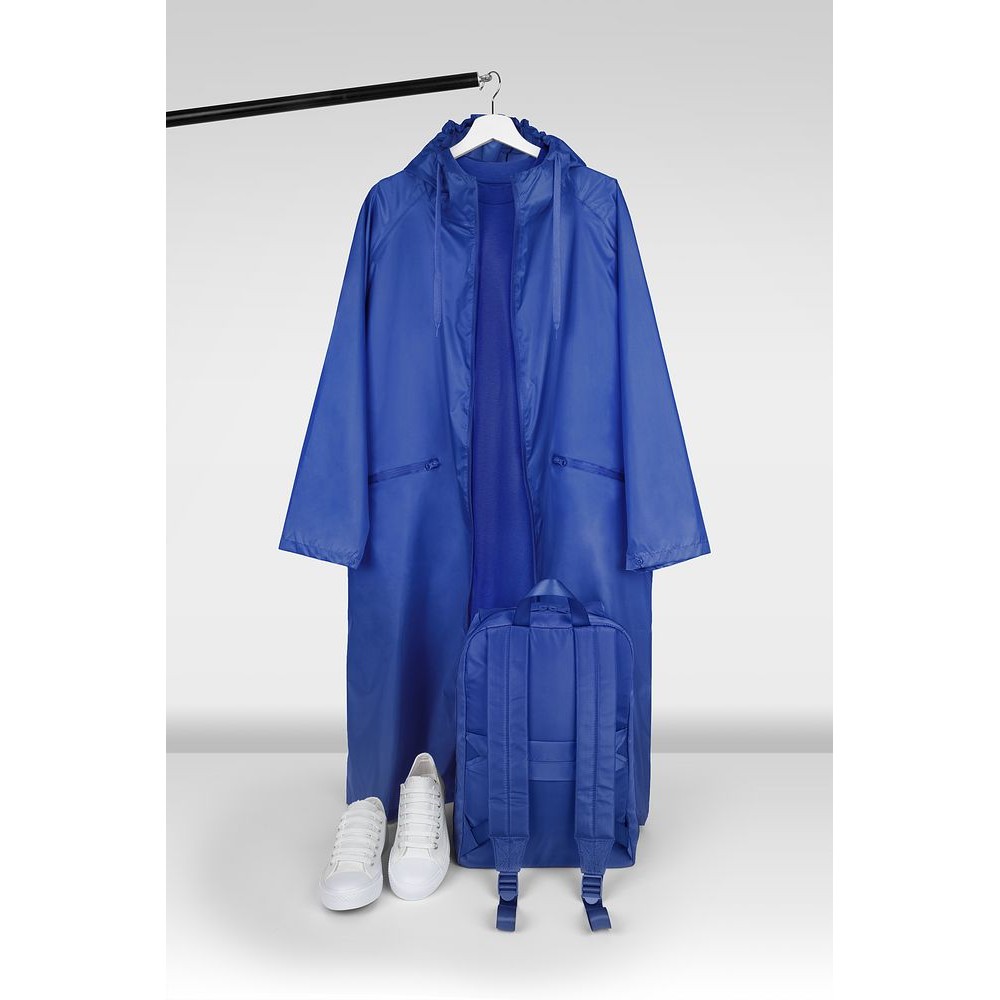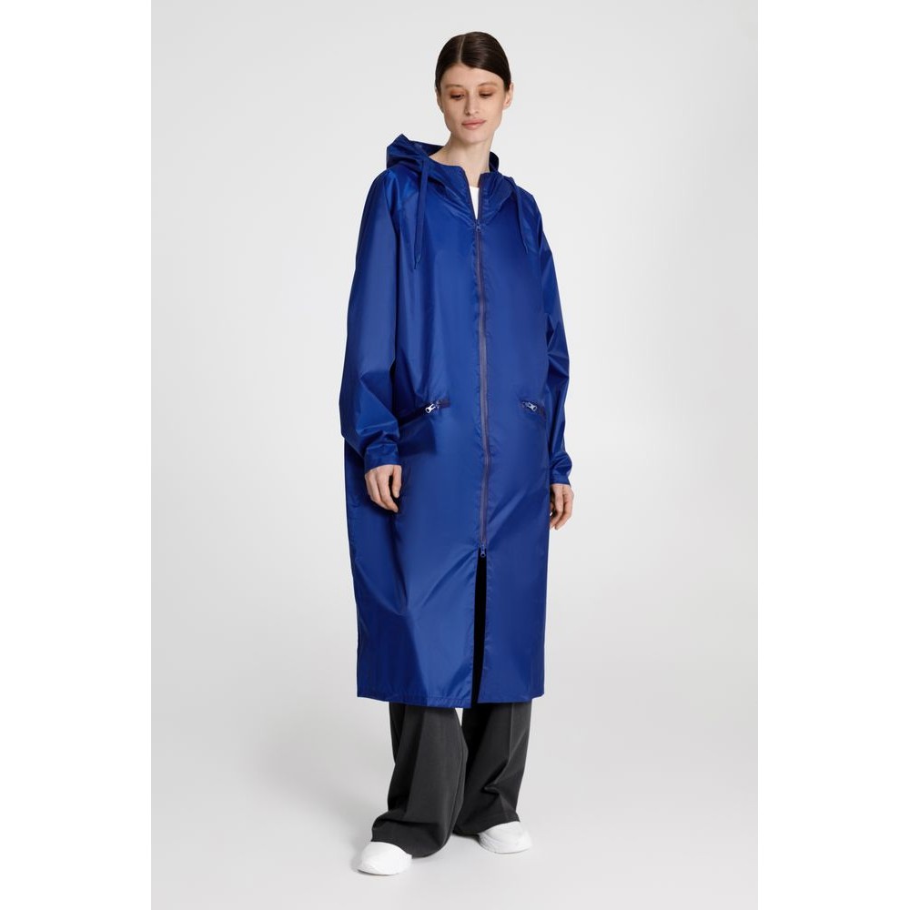 Плащ-дождевик на молнии с капюшоном из ткани таффета с полиуретановой пропиткой для защиты от сильного дождя.