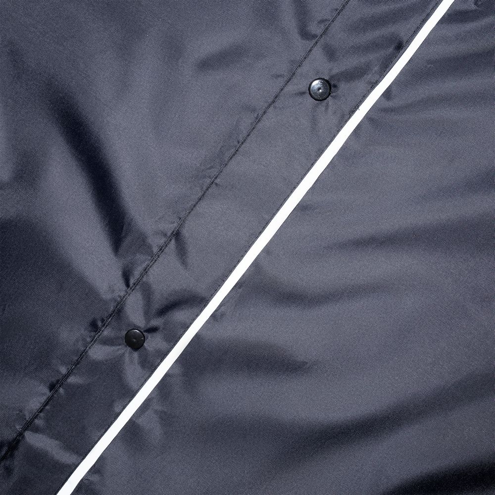 Плащ-дождевик из ткани оксфорд на кнопках с капюшоном. Световозвращающие элементы на рукавах и планке позволяют быть замеченным в темное время суток.