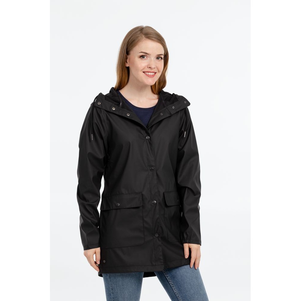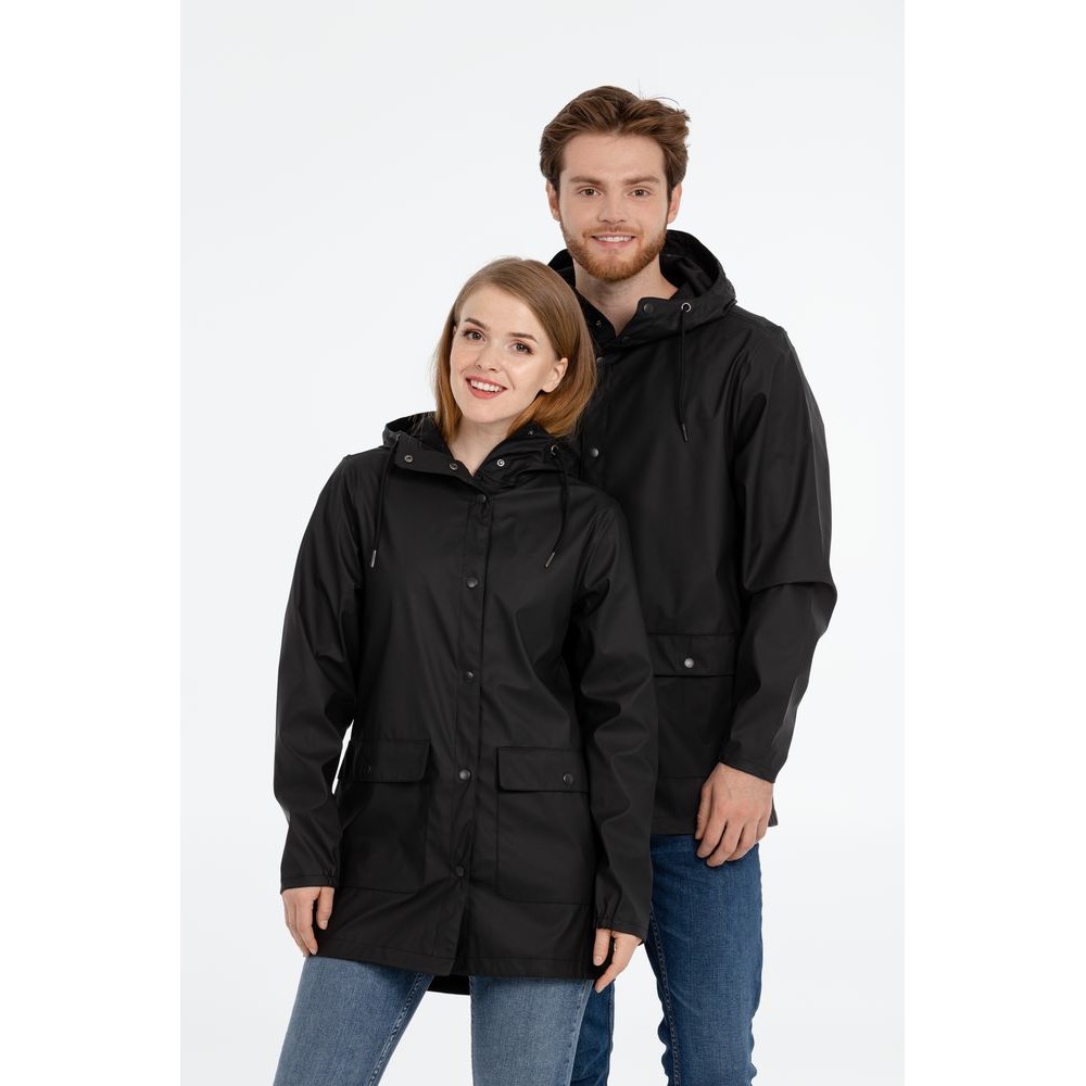 Стильный и практичный женский дождевик на кнопках из матового водонепроницаемого и ветрозащитного материала. Благодаря сварке ультразвуком швы абсолютно водостойкие. Карманы защищены от дождя накладными клапанами.