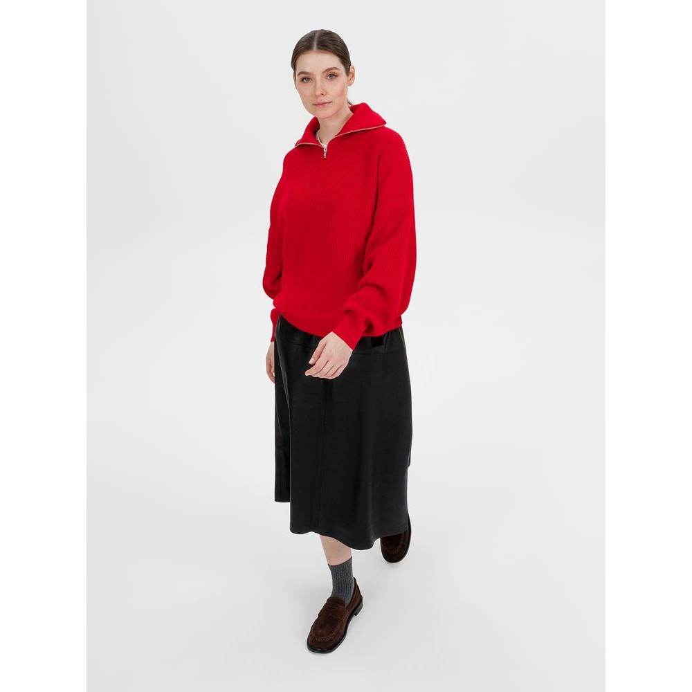 Siluetti Birne — плотный джемпер фактурной вязки со спущенной линией плеча позволит добавить в силуэт мягких линий и ненавязчивого объема, а также создать современный модный образ в лаконичном актуальном стиле, отдав при этом дань беспроигрышной классике. Дополнительным акцентом служит высокая горловина на молнии, а широкая резинка на рукавах и по нижнему краю изделия гарантирует максимальный комфорт.
