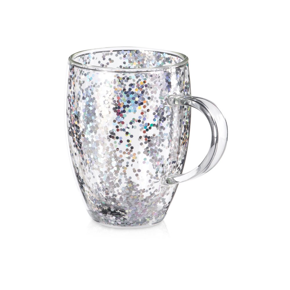 Кружка с двойными стенками с блестками, 360 мл, серебристый