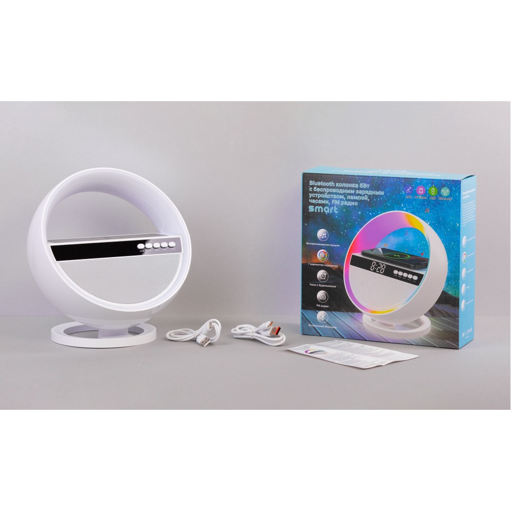 Bluetooth колонка "Smart Orb" 5Вт с беспроводным (15W) ЗУ, лампой, часами, FM радио, белый