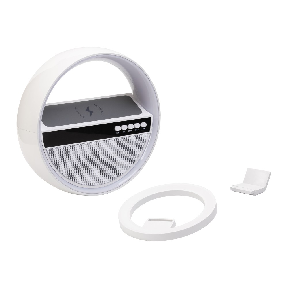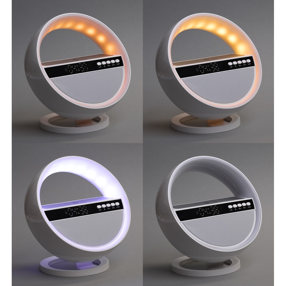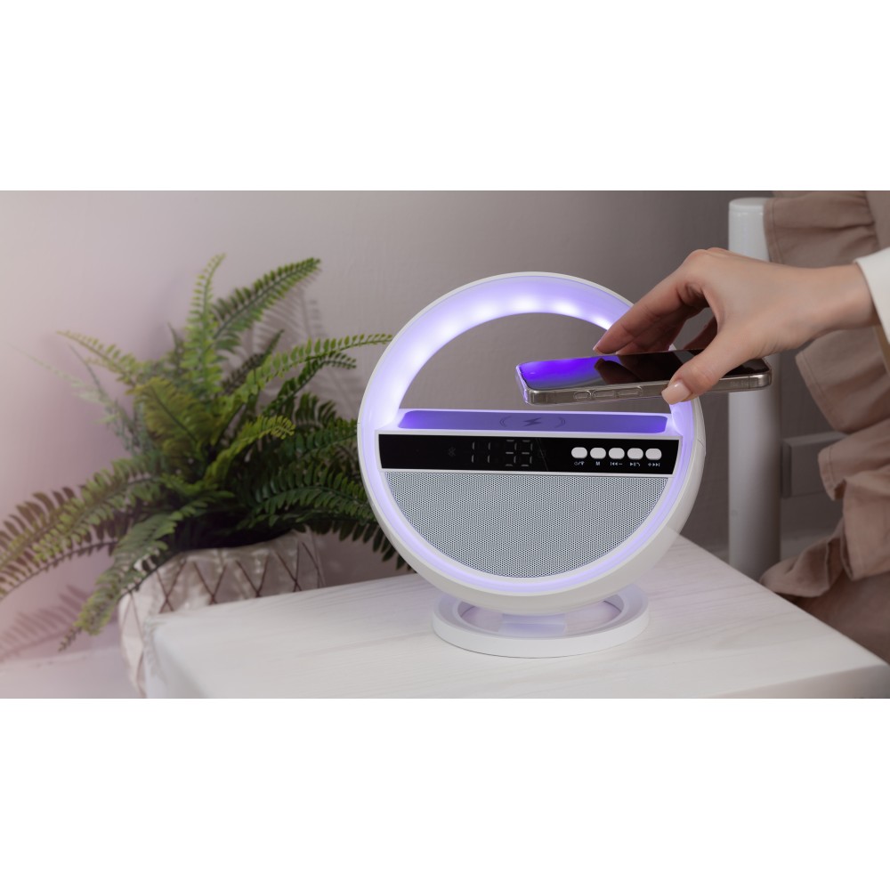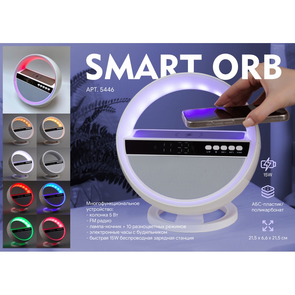 • Bluetooth колонка "Smart Orb" 5Вт с беспроводным (15W) ЗУ, лампой, часами, FM радио, белый