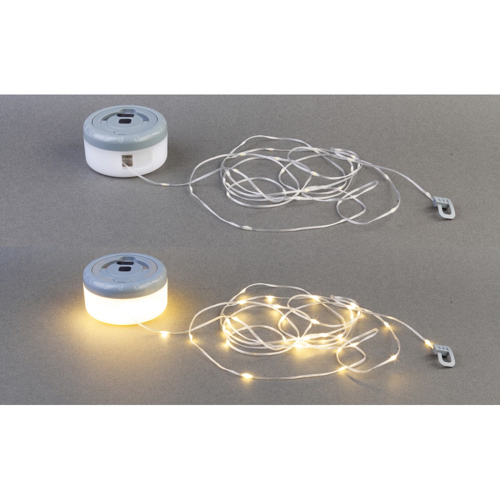 Благодаря встроенному аккумулятору на 1000 mAh, нет нужды запасаться батарейками. Достаточно зарядить гирлянду перед поездкой, чтобы она отдавала свет на протяжении вечера. Зарядка через разъем type-C. В комплекте провод USB/type-C 80 см. Удобный механизм сматывания позволяет быстро собрать гирлянду и аккуратно хранить её. Ручку можно использовать в качестве подвеса.