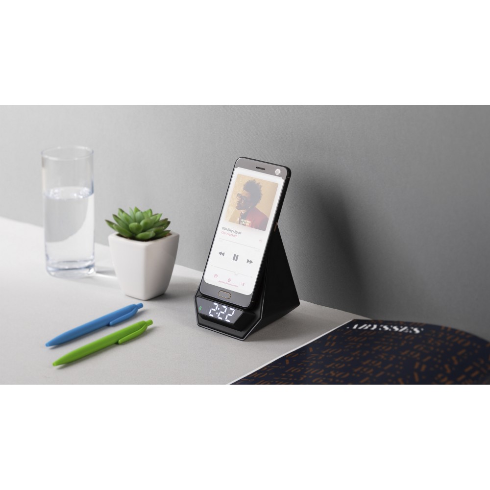 • Настольная Bluetooth колонка (3Вт) "Smart Pyramid" с часами и беспроводным (15W) зарядным устройством, с подсветкой логотипа, черный