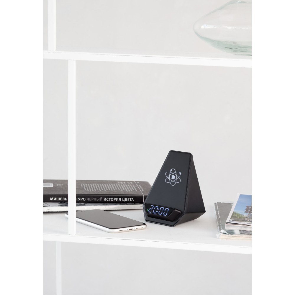 Настольная Bluetooth колонка (3Вт) "Smart Pyramid" с часами и беспроводным (15W) зарядным устройством, с подсветкой логотипа, черный