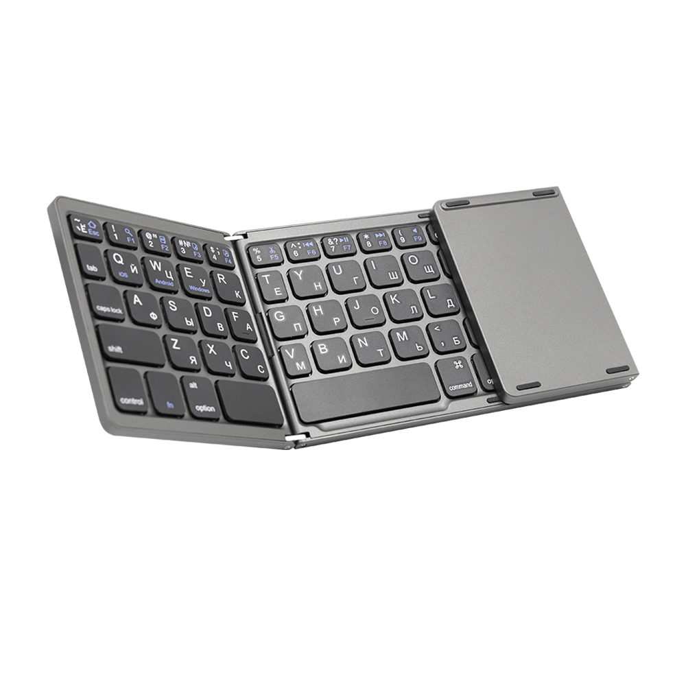 Портативная раскладная клавиатура Flexibord отличный помощник в путешествии, походе или кафе - в любом месте где можно удобно устроится с планшетом или телефоном для виртуального серфинга или общения в чате. Имеется удобный touchpad c отличной реакцией отклика. Встроенный аккумулятор, обеспечивающий продолжительность работы в 3-4 часа. И что самое приятное, раскладка клавиатуры дублируется русским алфавитом.