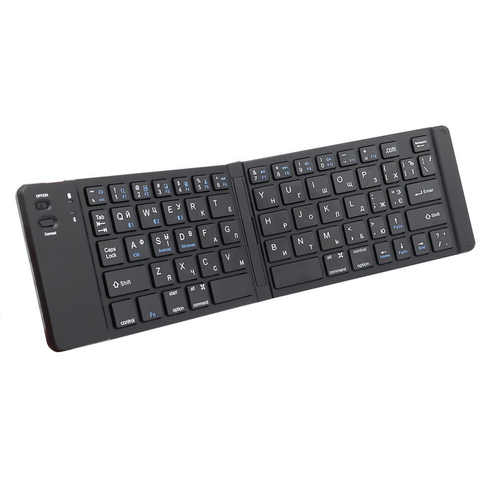 Портативная раскладная клавиатура Token удобный девайс в дороге и на работе. Быстрое подключение, компактный размер - помощник при работе с мобильным телефоном и планшетом. Встроенный аккумулятор, обеспечивающий продолжительность работы в 3-4 часа. Клавиатура маркирована русским языком.