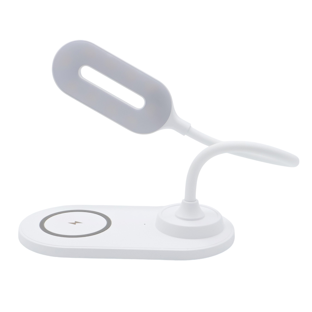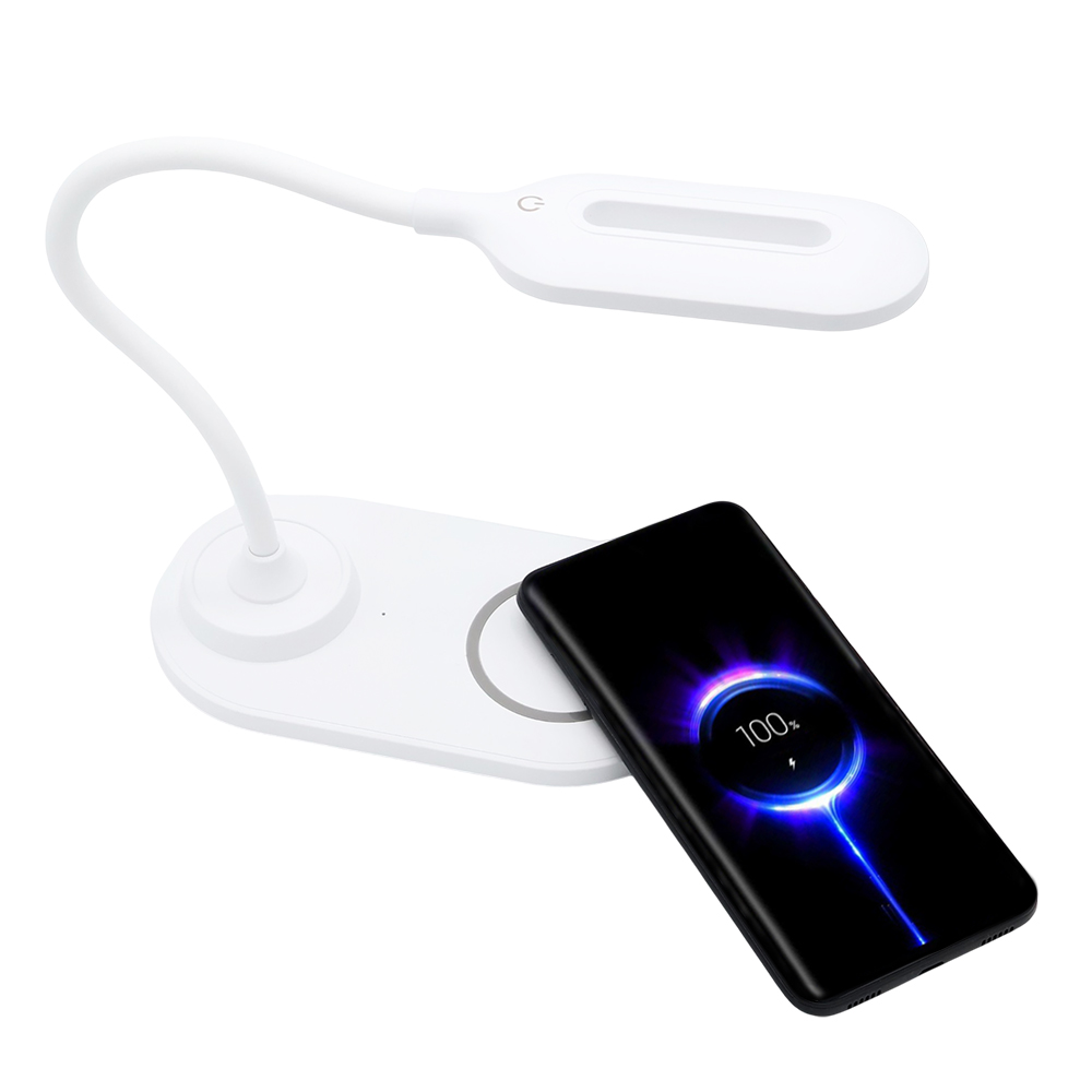 Настольная лампа с беспроводной зарядкой. Совместимость – все мобильные телефоны с поддержкой Qi. Входной сигнал 5V-2A/9V-1.67A. Напряжение 5 Вт/7,5 Вт/10 Вт. Рабочая частота 110-205 кГц. В комплекте кабель USB и инструкция. Область зарядки смартфона поддерживает все Android/Ios устройства с функцией беспроводной зарядки. Для работы беспроводной зарядки необходимо подключать устройство к сети через адаптер.