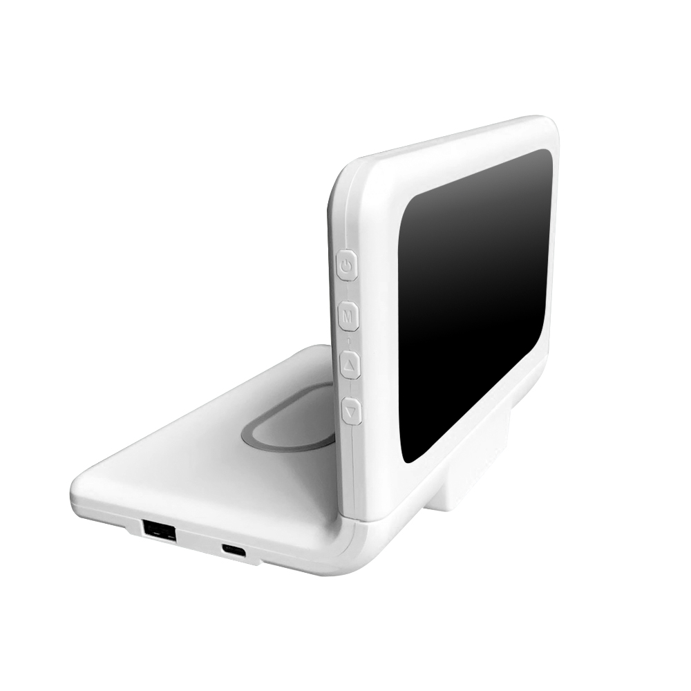 Многофункциональные электронные часы Konner с угловой формой,выдержанным дизайном LED экрана и удобной площадкой для беспроводной зарядки мощностью 10W. Функции: Время / Температура / Будильник / Беспроводная зарядка Qi. Для работы беспроводной зарядки необходимо подключать устройство к сети через адаптер.