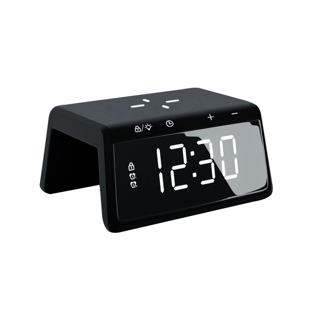 Часы настольные Bridge с функцией беспроводной зарядки, черный