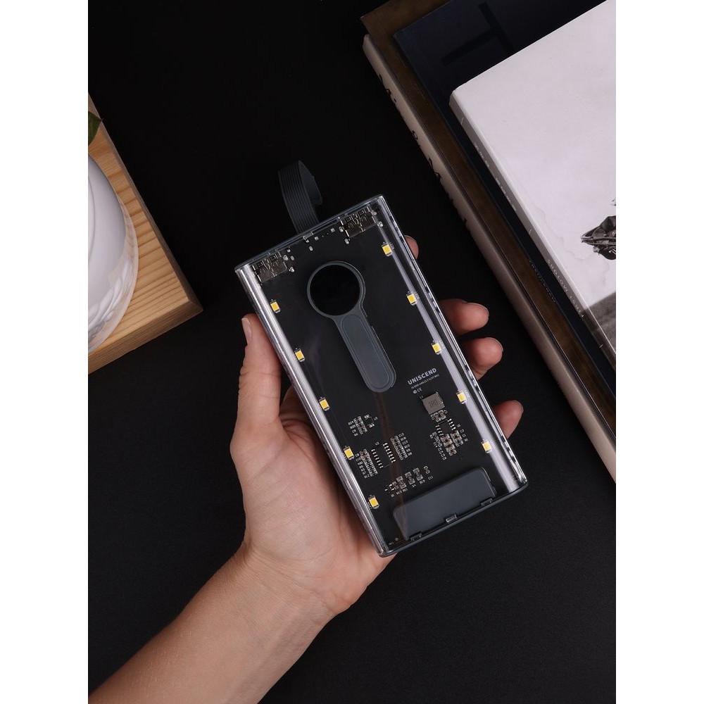 Необычный дизайн коллекции Uniscend Trellis выгодно выделяет новую серию устройств из прозаичного ряда внешних аккумуляторов. Они не поддерживают беспроводную зарядку, зато точно привлекают внимание: под прозрачной панелью хорошо видны электронная начинка и цифровой индикатор оставшегося в аккумуляторе заряда, а мягкая светодиодная подсветка теплого оттенка дополняет технологичный внешний вид.