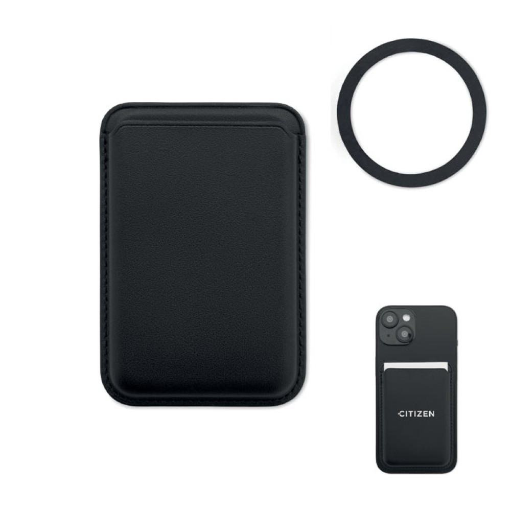Магнитный держатель для кредитных карт из искусственной кожи (на 3 карты). В комплекте дополнительное металлическое кольцо.