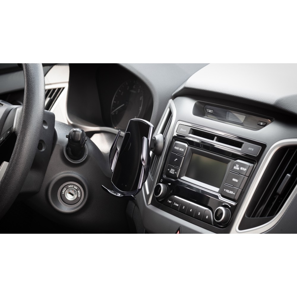 - установите смартфон на подставку, зажимы сойдутся, закрепляя смартфон на устройстве, начнётся беспроводная зарядка;