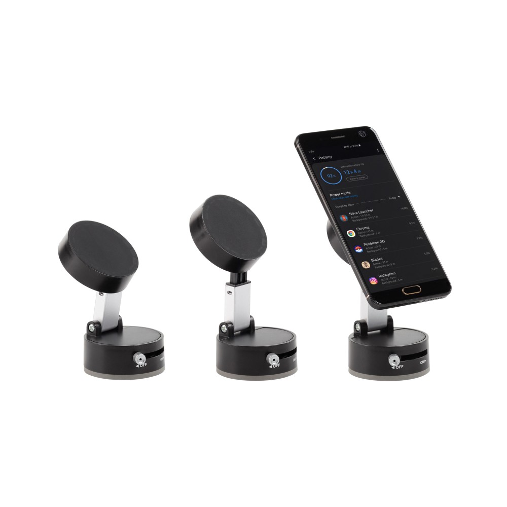 - Надежная фиксация. Мощная присоска обеспечивает крепкое сцепление с любой гладкой поверхностью, будь то лобовое стекло автомобиля, стол или зеркало. Для фактурных поверхностей (например, приборная панель с рельефным пластиком) используйте прозрачную подложку на клейкой основе, идет в комплекте. Перед наклейкой поверхность основания следует обезжирить.
