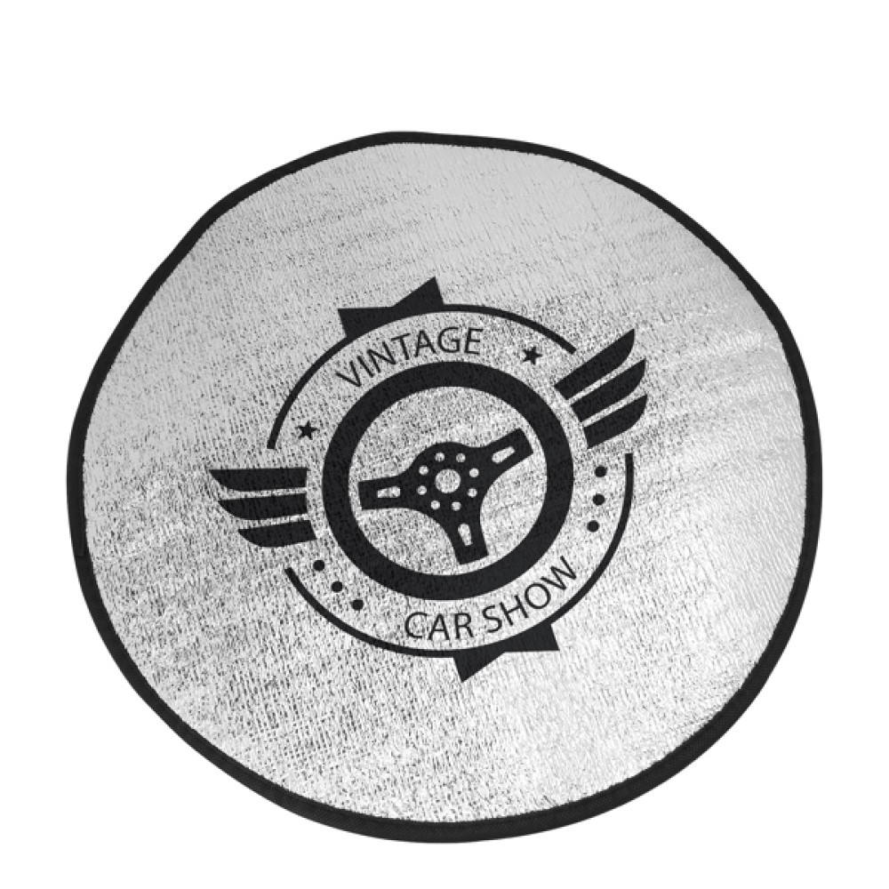 Солнцезащитный козырек рулевого колеса с передней частью из алюминия и задней частью из белого пенопласта. Черная окантовка.