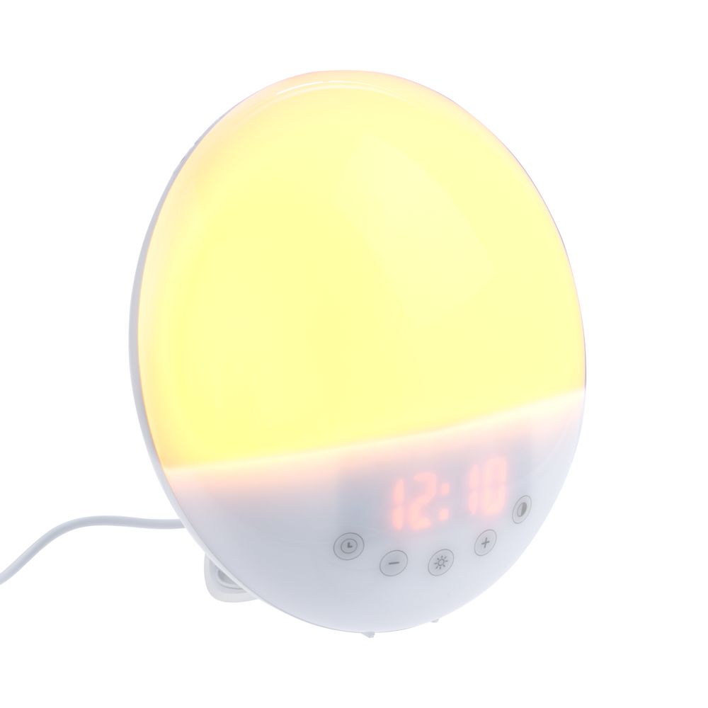 За 30 минут до звонка будильника активируется подсветка и ее яркость постепенно увеличивается — свет медленно выводит организм из фазы глубокого сна и вы будто встаете «с первыми лучами солнца». Эффект мягкого пробуждения можно дополнить натуральными звуками природы.