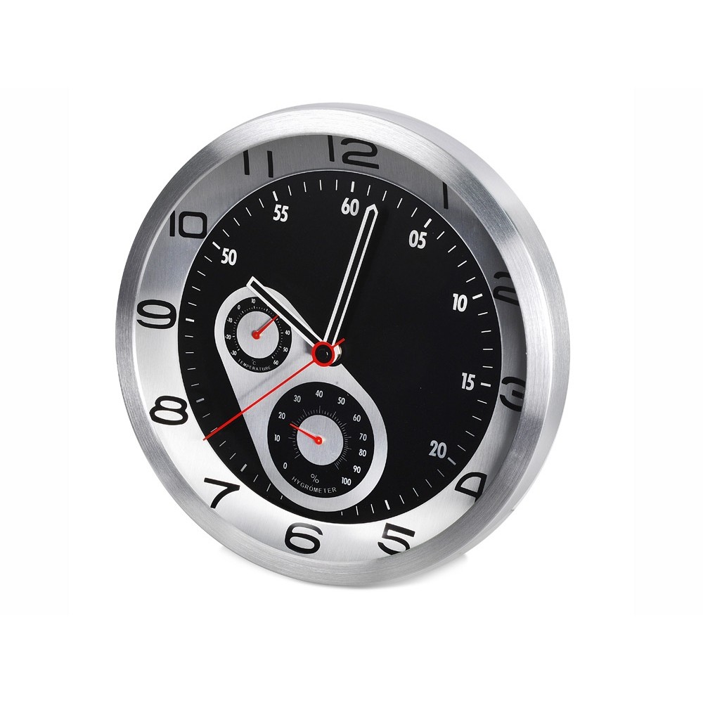 Настенные часы с термометром и гигрометром показывают не только точное время, но и температуру, а также влажность воздуха в помещении. Стильный аксессуар для любого офисного интерьера.