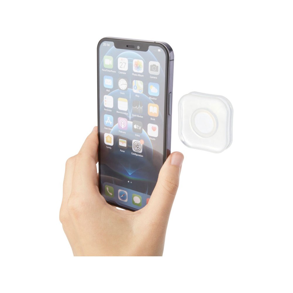 Моющийся, многоразовый портативный держатель для мобильного телефона с клеящимся слоем, который надежно фиксирует устройство. Держатель можно крепить к любой плоской поверхности, что позволит надежно и крепко зафиксировать телефон. Когда поверхность начинает отклеиваться, можно промыть клеящую сторону и приклеить заново. Поставляется с защитным футляром для удобного хранения. Пластик TPU.